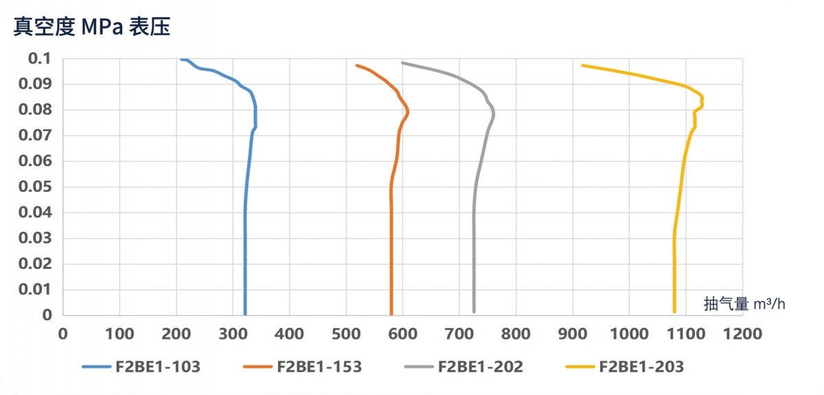 可满足246~1380m³/h的中高抽气量区间,其限度真空度也更高。采用弯曲叶轮设计,泵腔配备了一个单叶轮,上偏心设计,曲叶轮形成的液环流速稳定,湍流少,适用于大抽气量、高真空度的工况。相比径向叶轮,弯曲叶轮形成的液环,气液掺混较小,整体压差更小,可以更有效的实现气体的吸入和压缩,能量利用更有效。